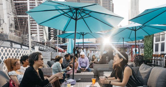 The multi-room Bushwick venue Elsewhere always comes to play. Now you can head to their roof beginning on 6/27 for outdoor drinks and eats with a view and enough space to stay a safe distance from other guests.