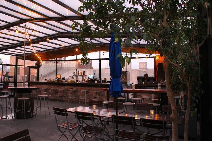 Berry Park is an ideal partially covered rooftop space with some awesome beers on tap and tasty sausage options. After you order, head over to the foosball tables for some friendly competition with friends. No stress if the rooftop's full, there's a backyard space available!