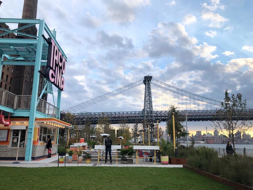 Tacocina stands right along the East River in Domino Park serving up classic Mexican bites. Order a Paloma and watch the ferries cruise by.