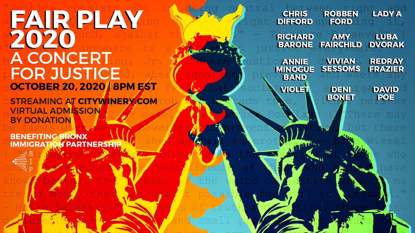 Streaming live from City Winery NYC on October 20th, Fair Play 2020: A Concert for Justice will feature performances from Robben Ford, Chris Difford (of Squeeze), Lady A, Luba Dvorak, and more. Though the event is free, donations are encouraged and will go to the Bronx Immigration Partnership. This organization unites with local community groups to build a network and provide crucial resources for the city’s immigrant population.