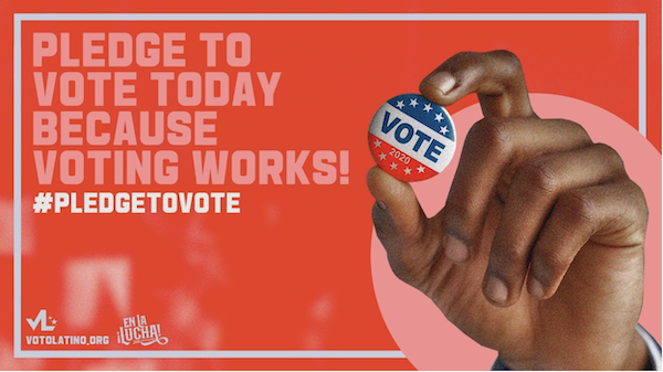 Make sure to use the hashtags #PledgeToVote & #EnLaLucha to spread the word and visit Voto Latino’s website for resources including candidate information, accessibility options for non-English ballots, and more!